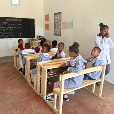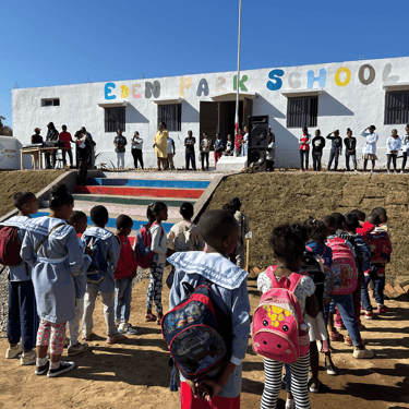 Inaugurée en Septembre 2023 à Ampefy au centre de Madagascar, l'École Eden Park School accueille 150 enfants de la Maternelle à la classe de Troisième.