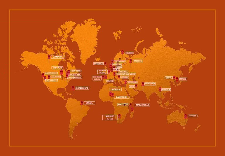 Par la grâce de Dieu, j'ai prêché l'Évangile dans 28 villes dans le reste du monde. Des États-Unis au Japon, d'Israël à Madagascar, le message est le même :